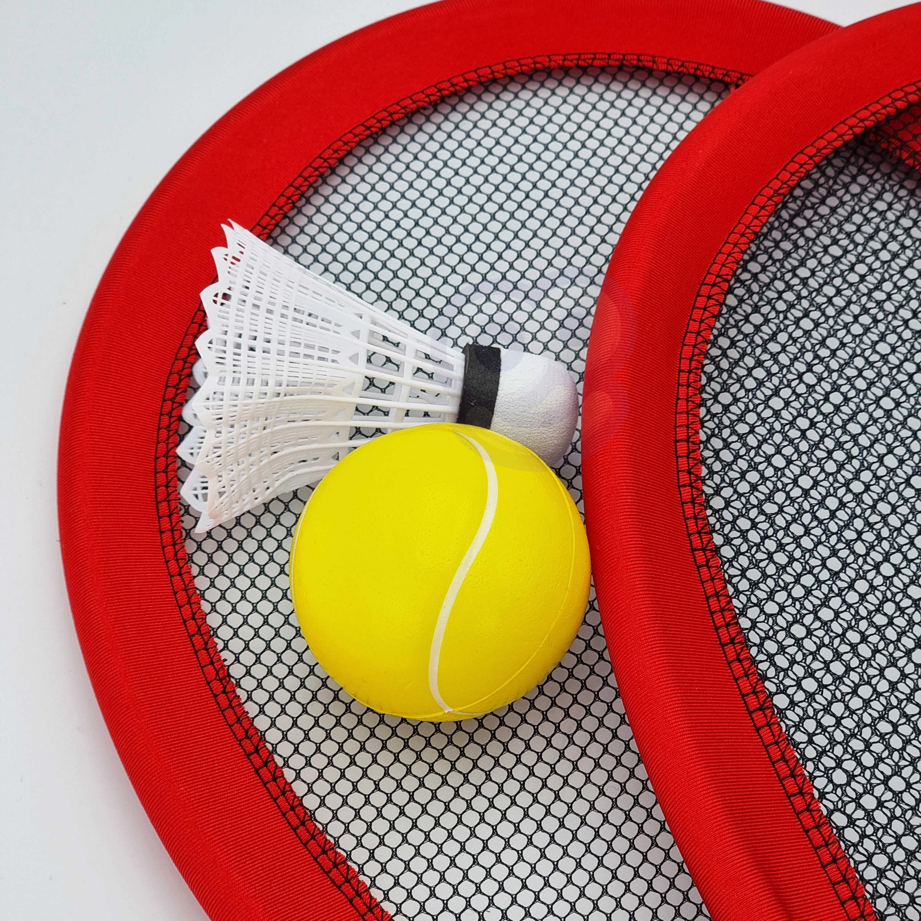Комплектът съдържа леки ракети, комбиниращи пластмаса и текстил, които позволяват лесна работа и дълъг живот, идеални за всички възрастови групи.