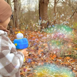 Тази машина за балони се активира лесно с натискане на бутон, след което автоматично започва да създава балони. Благодарение на ефектното осветление играчката е впечатляваща както през деня, така и през нощта. Оборудвана е с връзка, с която детето може да я носи на врата и да пуска балони по време на разходки без да държи бутона. Подходяща за употреба както на открито, така и на закрито.