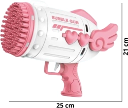 Благодарение на обмисления механизъм пистолетът равномерно разпределя разтвора към всички отвори и осигурява богат ефект от балончета. Практичната подложка за разтвора улеснява потапянето на накрайника. В комплекта има и акумулатор с USB зареждане и 2 пълнителя, за да започнете веднага след разопаковане.