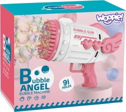 Забавният пистолет за балончета WOOPIE превръща всяка игра в вълшебно зрелище. Благодарение на 91 отвора създава огромно количество мехурчета с едно натискане на спусъка. Лесен за управление, идеален за навън и у дома, а в комплекта ще намерите и 2 шишенца с разтвор, акумулатор и заряден кабел – нужно е само да го заредите, да потопите накрайника и балоненото забавление може да започне.
