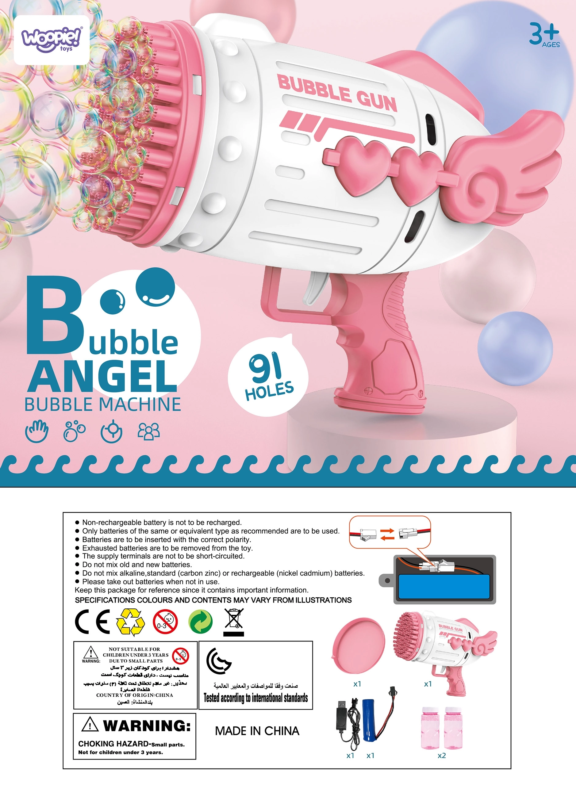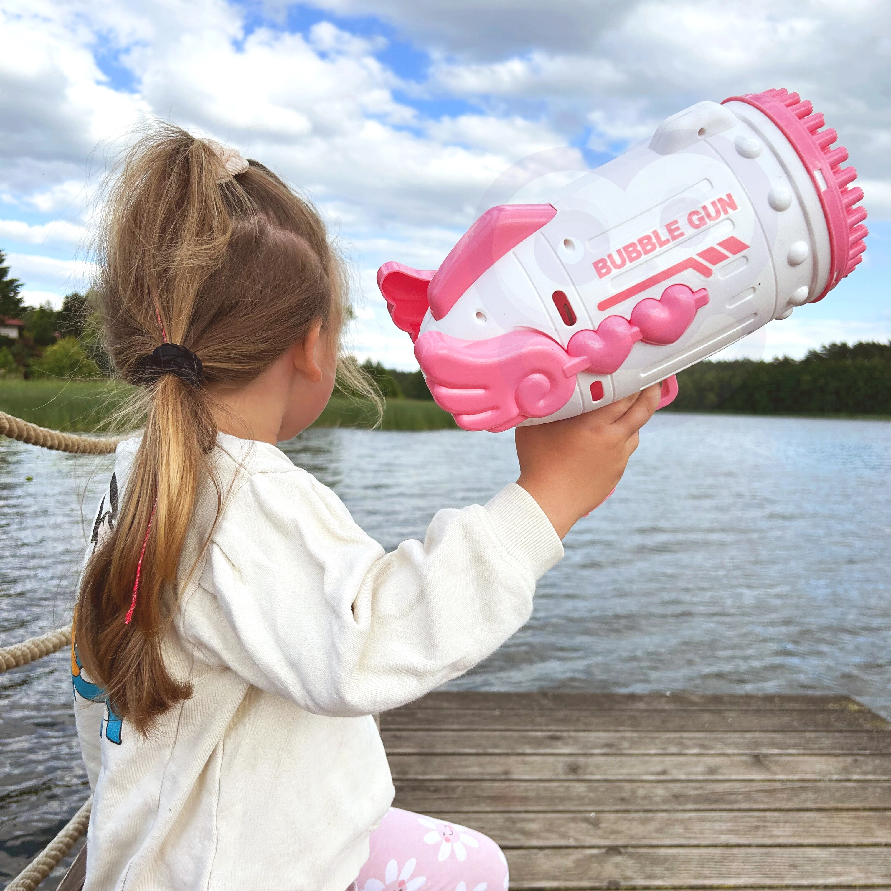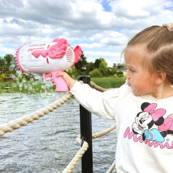 Пистолетът за балончета WOOPIE с 91 отвора предлага изключително висока честота на създаване на мехурчета и сътворява приказна атмосфера за миг. Ергономичната ръкохватка е удобна дори за по-малки деца, така че играта е комфортна и безопасна.