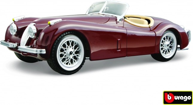 Моделът Bburago Jaguar XK 120 Roadster (1951) в мащаб 1:24 представя легендарния британски роудстър в стилно червено. Достоверните линии на каросерията, автентичните елементи в интериора и качественото боядисване подчертават елегантността на автомобила, който по онова време е принадлежал към най-бързите серийни модели.