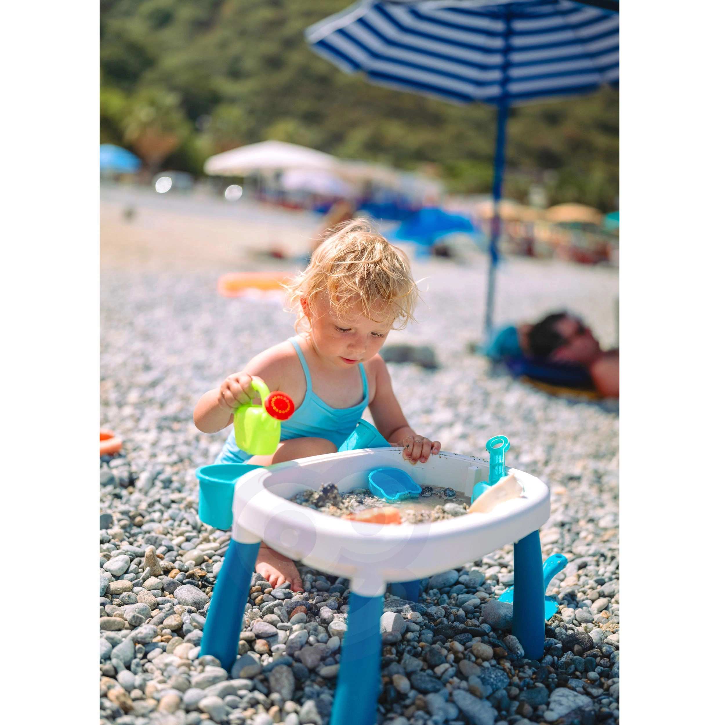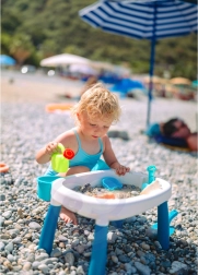 Открийте универсалната детска масичка за вода и пясък 2в1, която превръща всяко следобед в малък ваканционен свят. Двата отделни контейнера позволяват да се комбинират водни игри с пясъчни активности, докато стабилните крака и издръжливата пластмаса осигуряват безопасна игра у дома, в градината или на плажа.