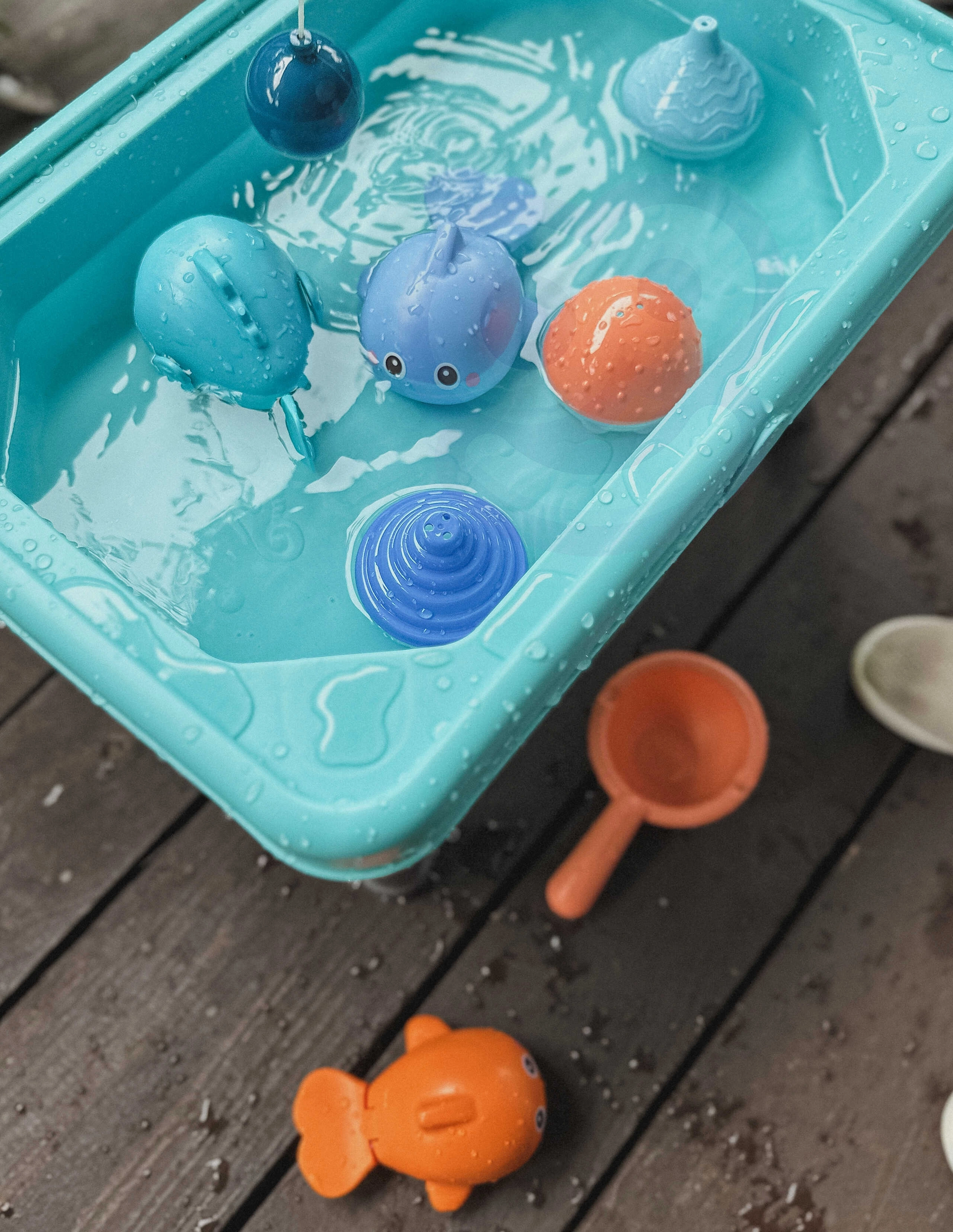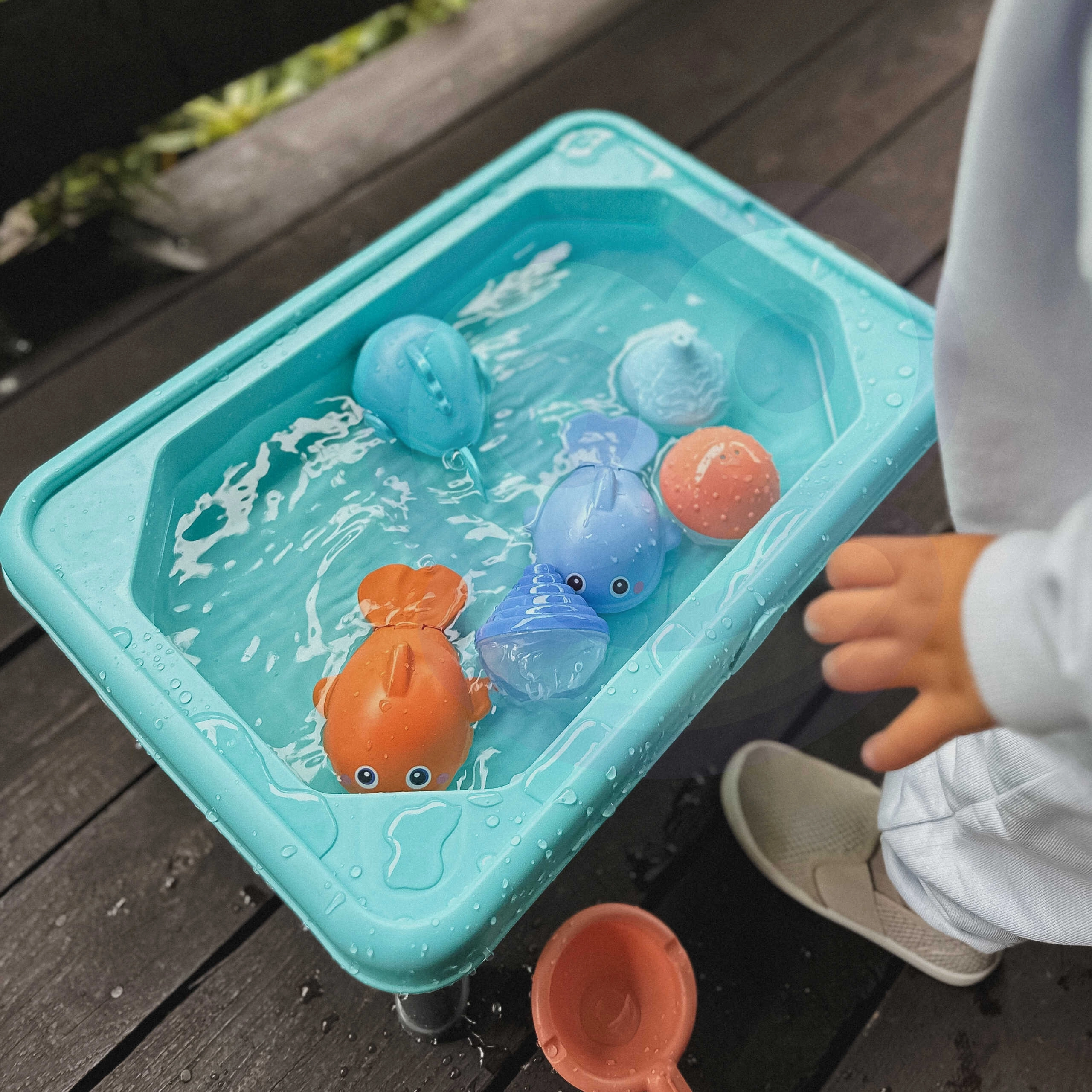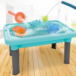 Тази масичка комбинира водни игри, пясъчник и риболов в една универсална играчка. Вашето дете може лесно да превключва между дейностите според предпочитанията си.