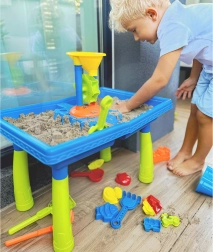 Благодарение на двете отделения масата позволява едновременно игра с вода и пясък, което предлага разнообразни възможности за забавление.