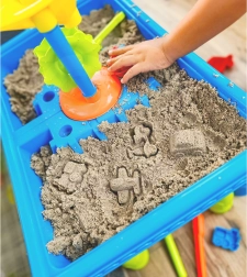 Масата за вода и пясък е проектирана да привлича вниманието на децата и да ги задържа ангажирани дълго време благодарение на интерактивните елементи.