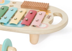 Този комплект съдържа пет различни музикални инструмента, които чудесно пасват на малките детски ръце. Всеки инструмент е изработен от качествено дърво и е боядисан с нетоксични бои, които са безопасни за децата и околната среда.