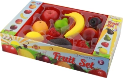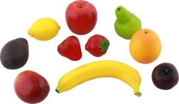 Комплектът пластмасови плодове Masterkidz носи на децата реалистично игрово изживяване. Благодарение на внимателната изработка на повърхността и цветовете елементите изглеждат много правдоподобно – децата упражняват разпознаване на различни плодове и се забавляват с часове креативна игра в детската кухня или магазинче.