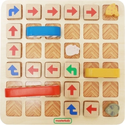 Дървената логическа игра Masterkidz запознава децата по забавен начин с принципите на програмирането. С помощта на цветни стрелки и „инструкции“ те водят мишката към сиренето, като тренират логическо мислене, решаване на проблеми, пространствена ориентация и координация око–ръка. Отлична основа за първи стъпки в програмирането още в предучилищна възраст.