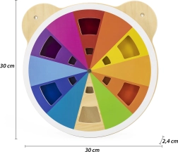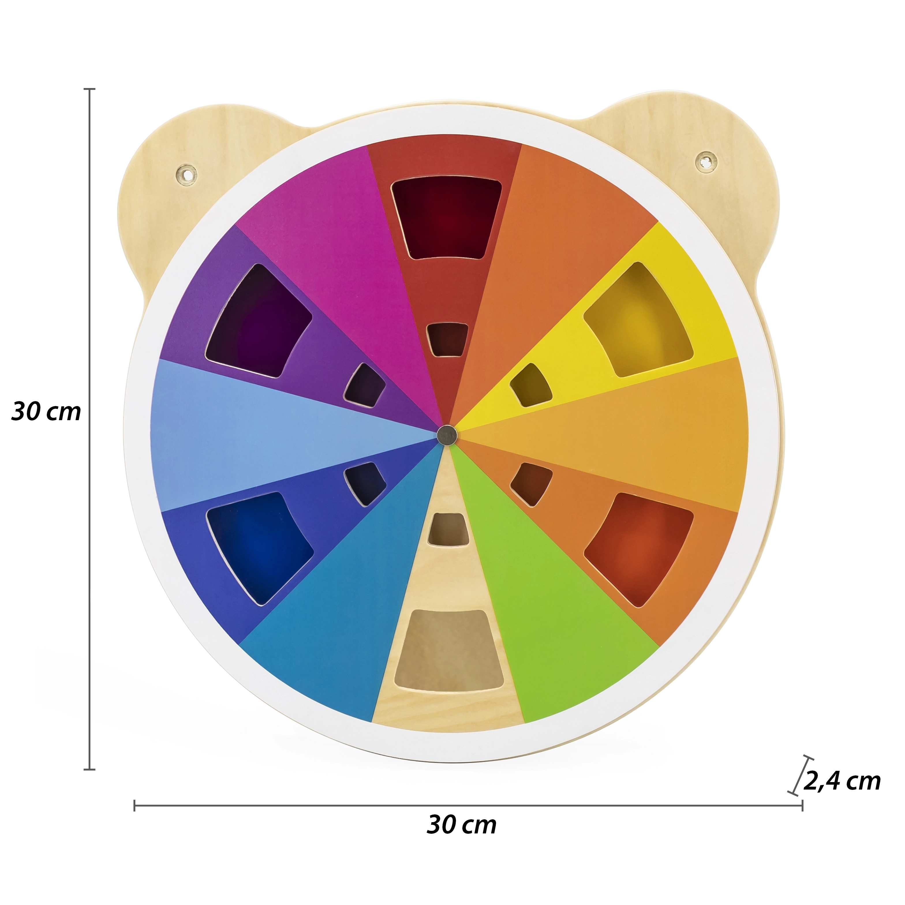 Дъската позволява на децата да откриват и научават нови цветове чрез завъртане на акрилен диск.