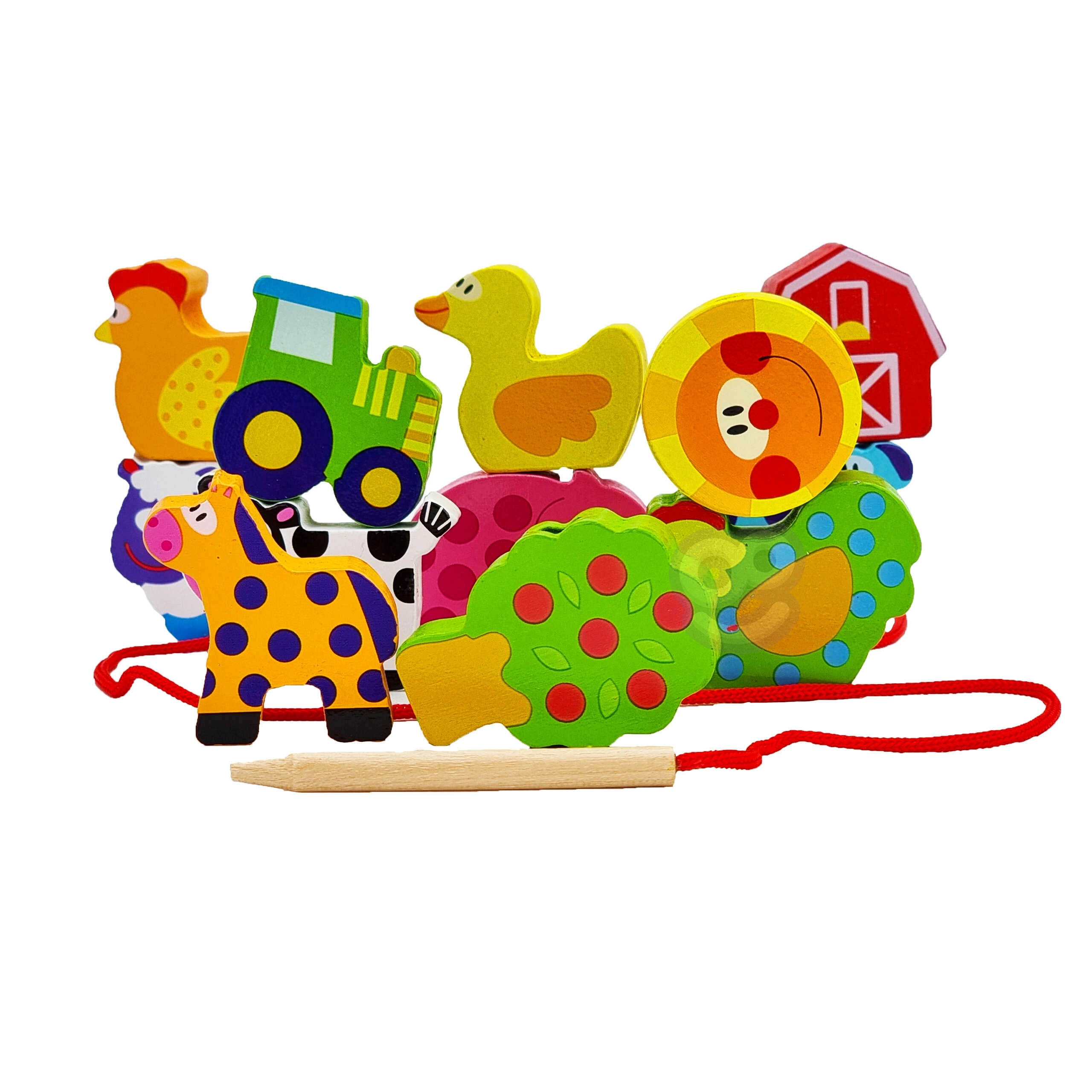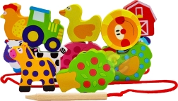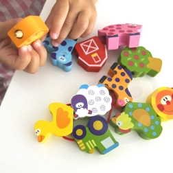 Тази образователна нанизваща играчка насърчава търпението, концентрацията и създаването на собствени истории от живота във фермата. Елементите са здрави, приятни на допир и идеални за малки детски ръце.