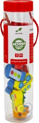 Този креативен комплект носи радост от нанизването и подреждането на децата от 2 години. Благодарение на пъстрите цветове и различните форми на превозните средства, малките ръчички се учат на прецизност и търпение, докато децата по игрив начин усвояват основите на пътната безопасност. Естественото дърво и гладките ръбове осигуряват приятен и безопасен допир.