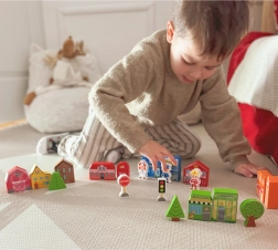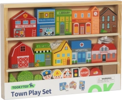 Дървеният комплект градче TOOKY TOY носи пъстър свят, пълен с фантазия и учене. Постройте свое собствено малко градче със сгради и фигурки, развивайте креативността, социалните умения и фината моторика. Качественото дърво и нетоксичните бои осигуряват безопасна игра и дълъг живот на играчката.