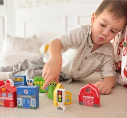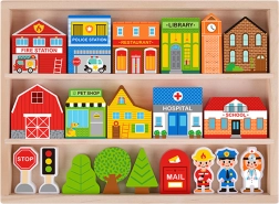 Създайте оживен град с болница, училище, библиотека или пожарна станция и оставете децата да откриват ролите на пожарникар, полицай и лекар. Комплектът подпомага самостоятелната и съвместната игра, развива въображението и естествено учи за функционирането на общността.