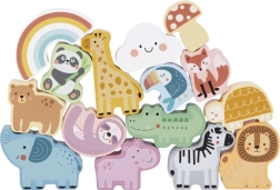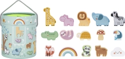 Съдържа 15 дървени фигурки, включително животни, дъга, облаче и гъбка за разнообразна и образователна игра.