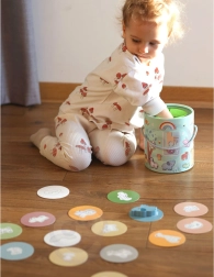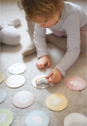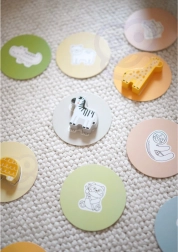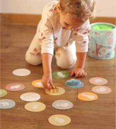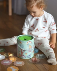 Комплектът позволява различни начини на игра, включително съчетаване по двойки, учене на цветове, названия на животни и строене на кули.