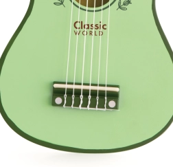 Пастелна дървена китара от марката CLASSIC WORLD е идеалният избор като първи музикален инструмент за вашето дете! Звуците от тази китара подпомагат развитието на слуха, а създаването на собствени мелодии носи на детето голяма радост. Китарата е проектирана да бъде безопасна за малки деца.