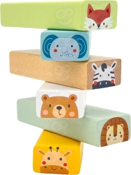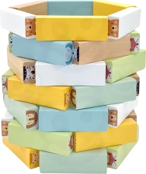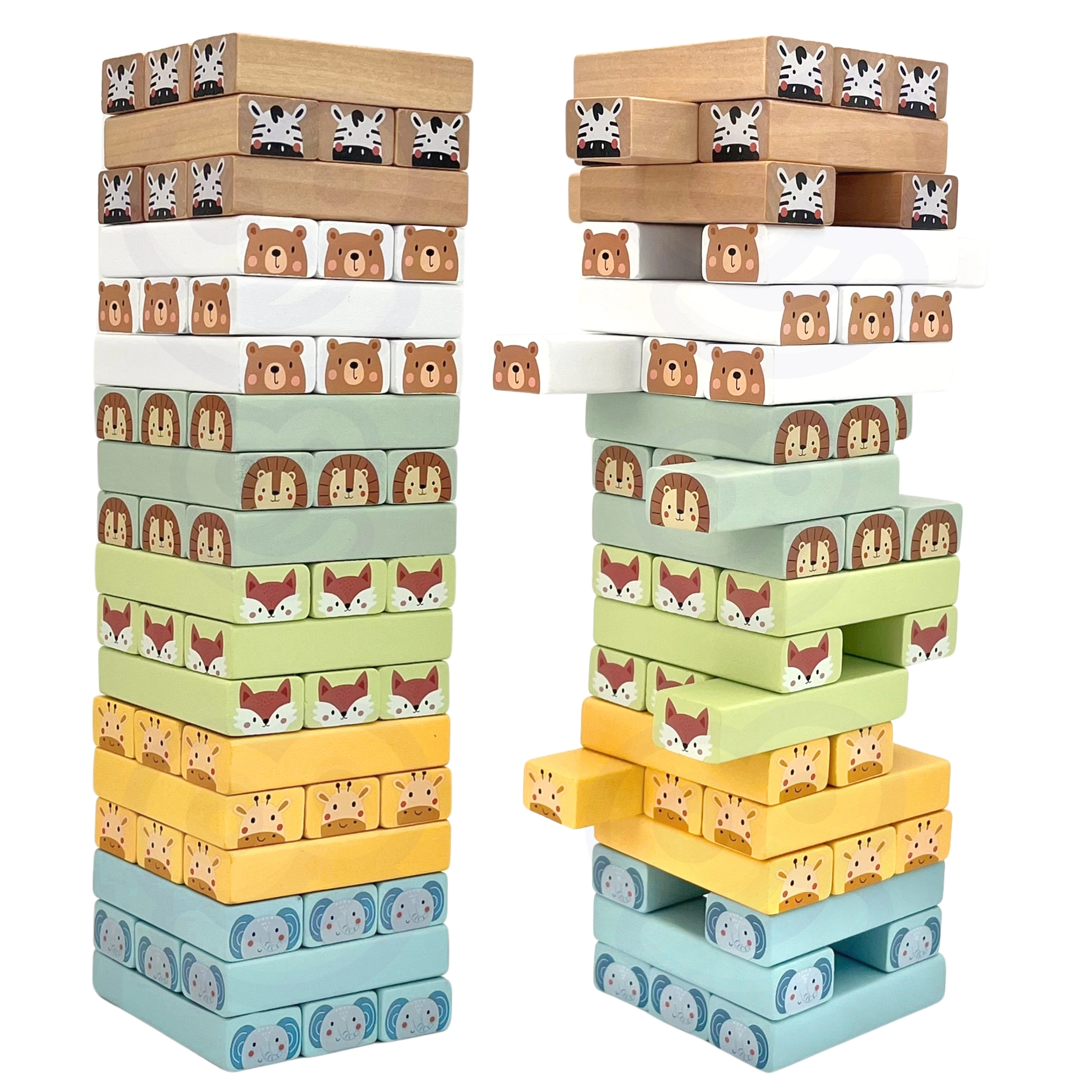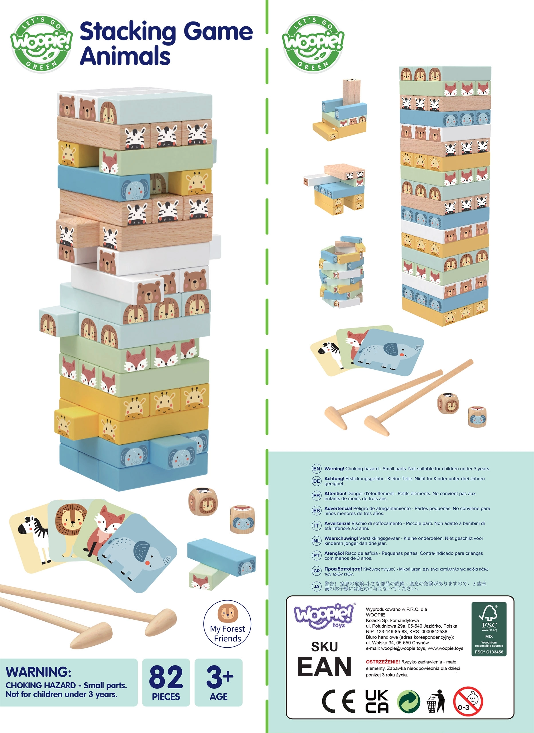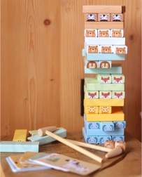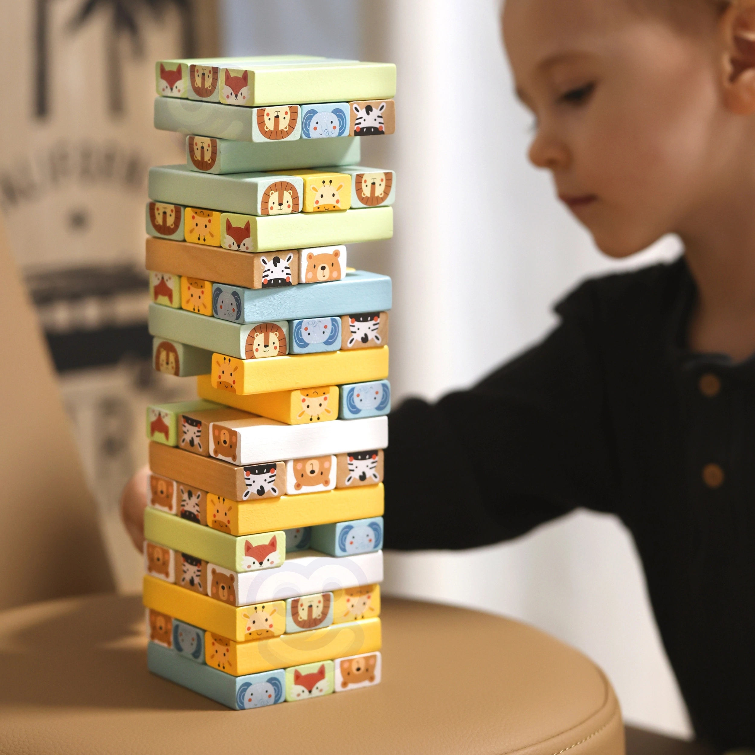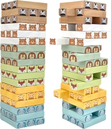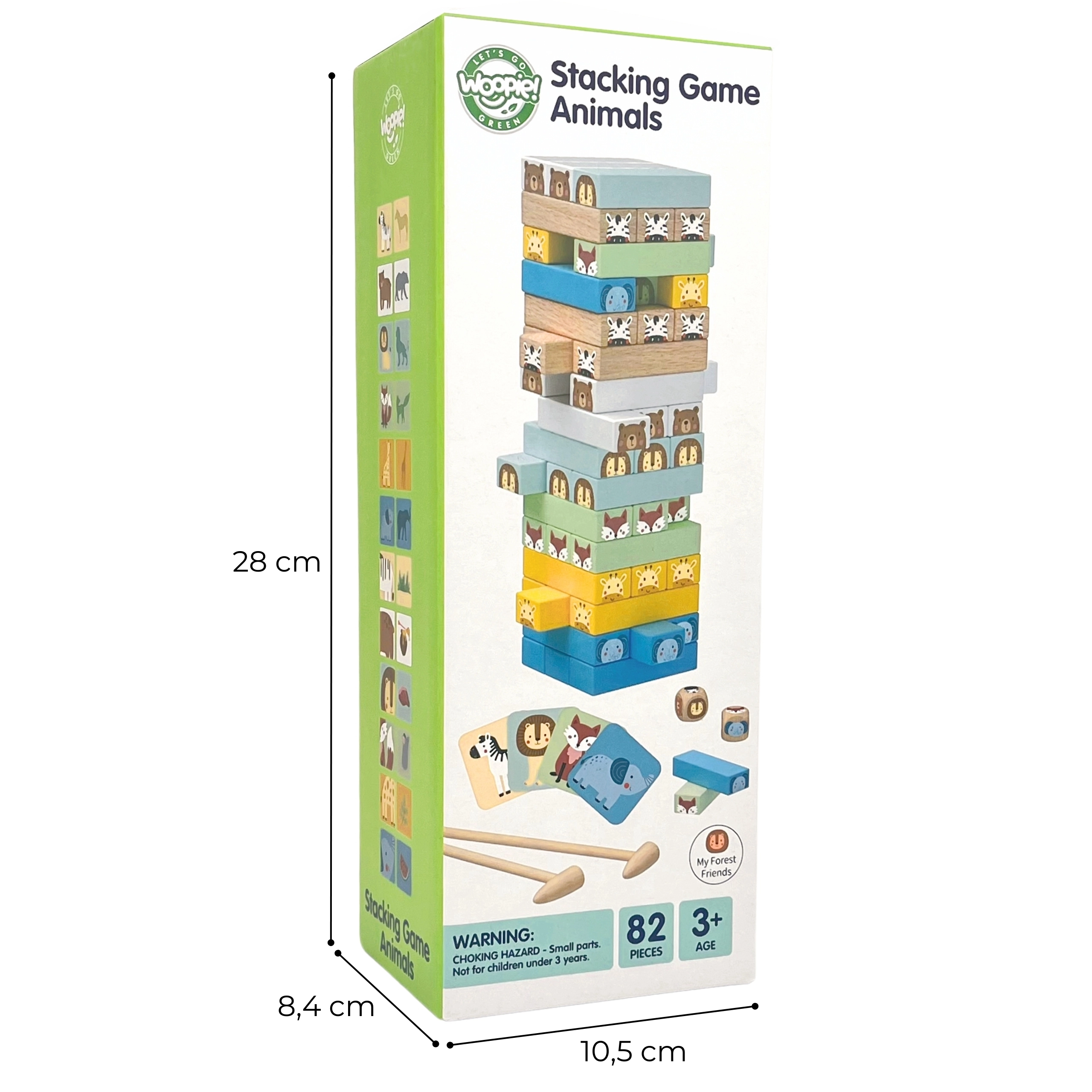 Дървената игра Трепереща кула от марката WOOPRIE е чудесен избор за развитие на моториката на вашите деца и за забавление! Комплектът съдържа 82 части от издръжливо дърво с пастелни цветове и стикери с животни. Отлична за стратегическо мислене и концентрация.