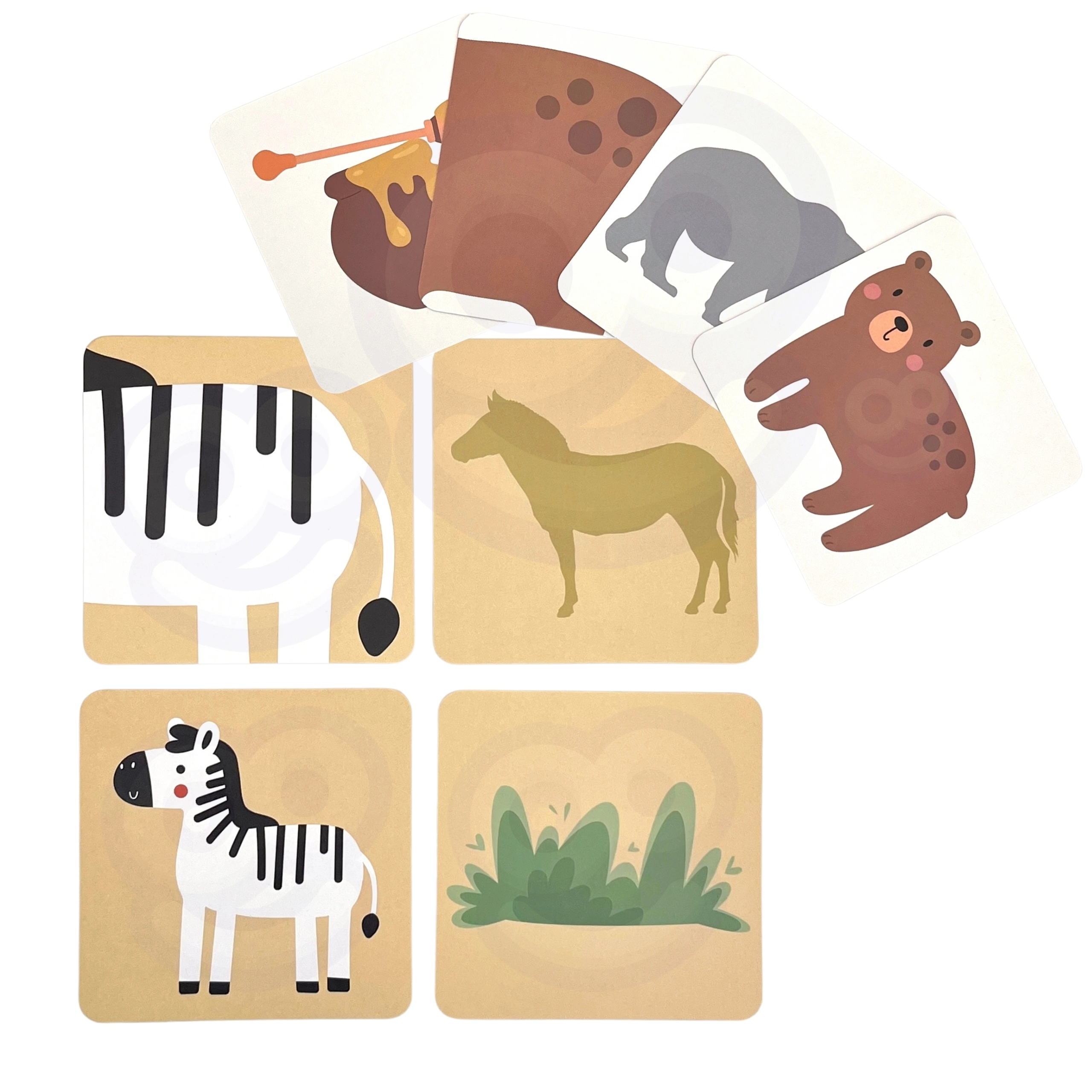 - Игра с карти: играчите трябва да съпоставят животните на картите с допълващите ги изображения или силуети.