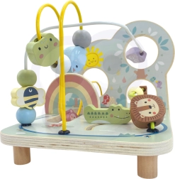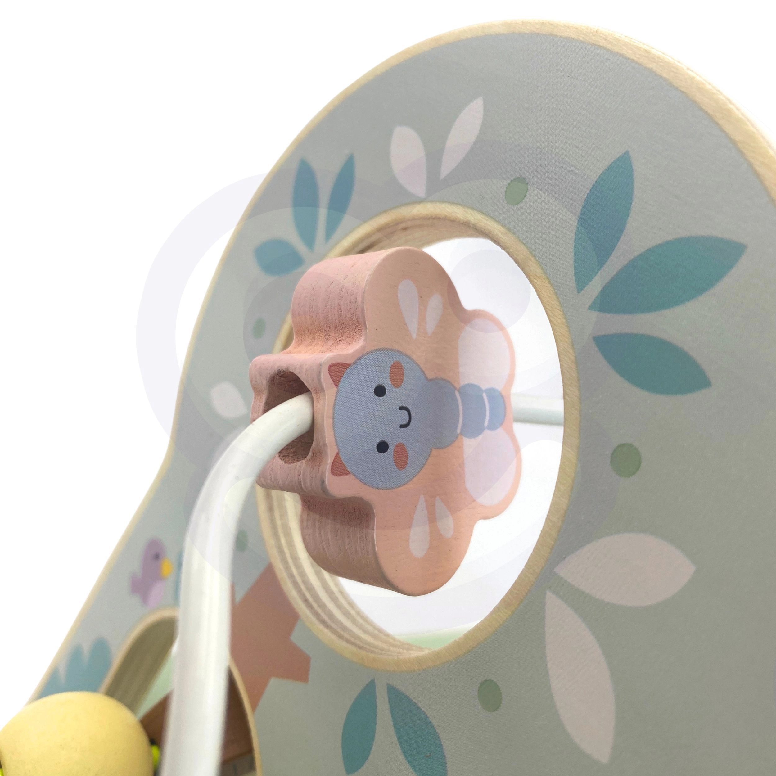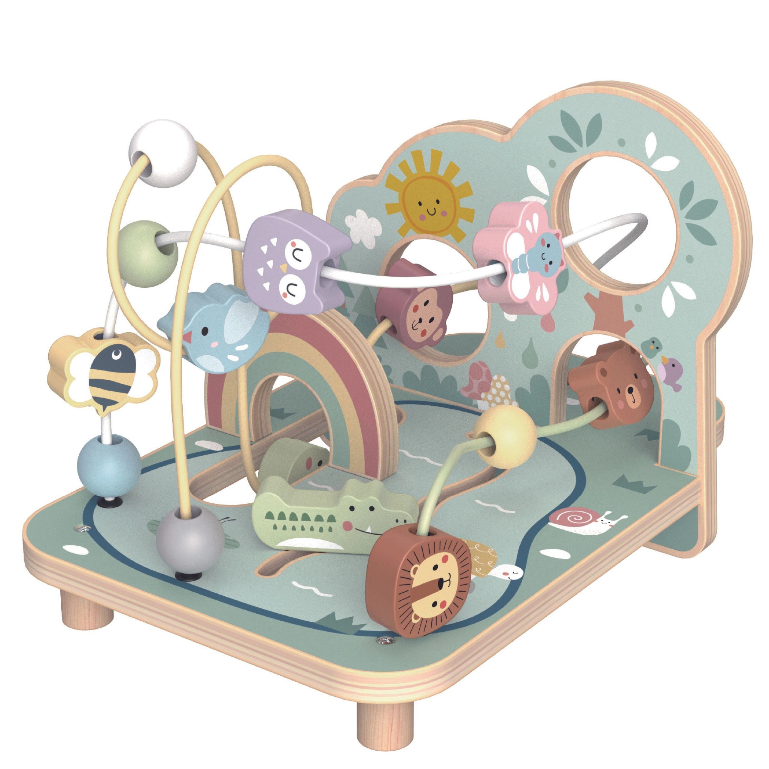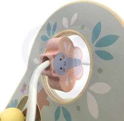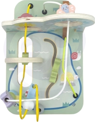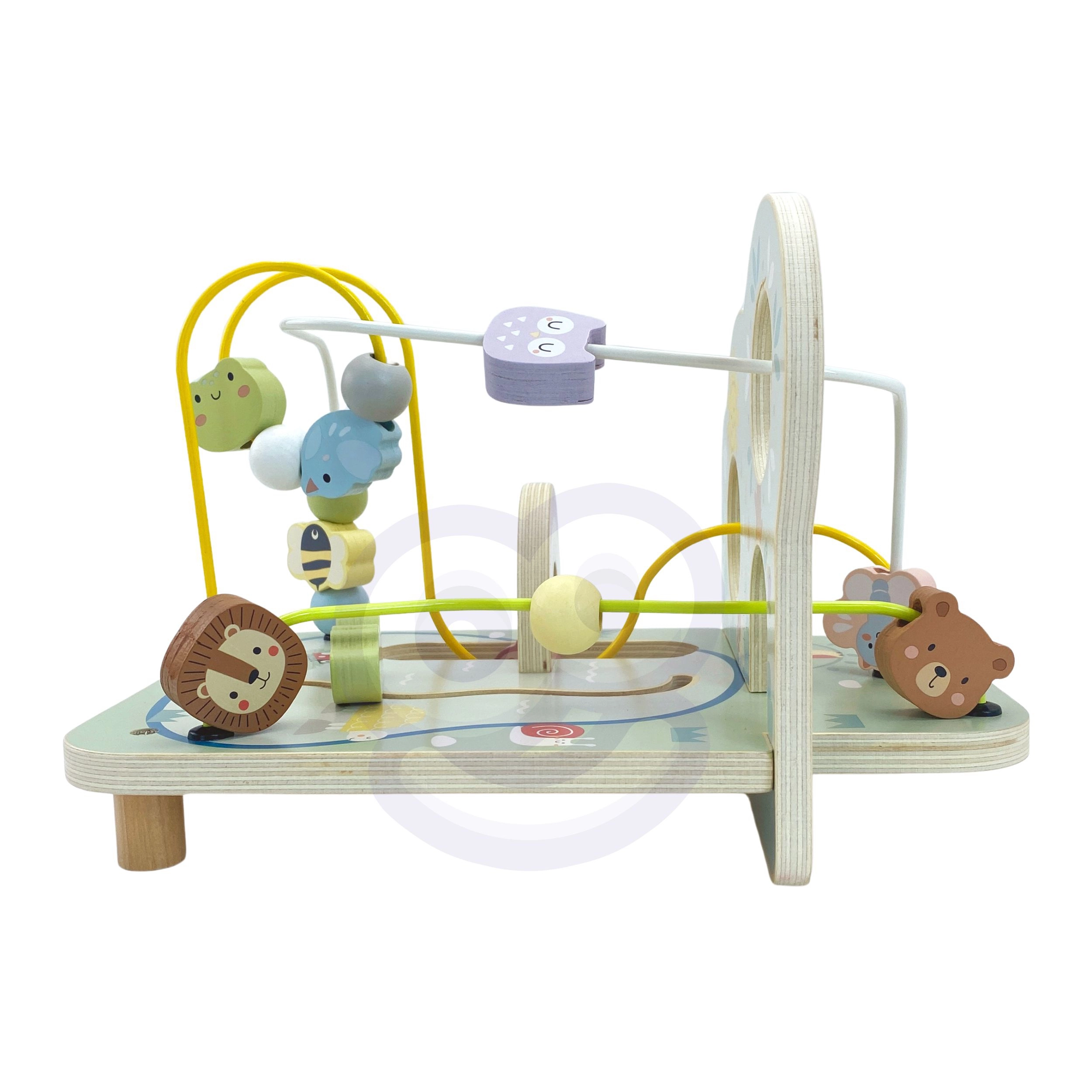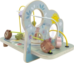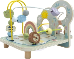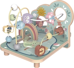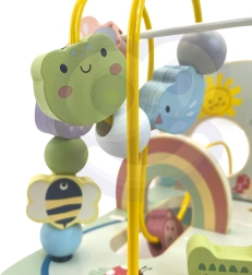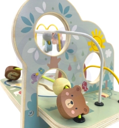Горското мънистерно лабиринтче от масивно дърво впечатлява с качествена изработка, пастелни цветове и мили илюстрации на животни, дъга и слънце. Децата преместват мънистата и фигурките по трите извити пътеки, тренират прецизността на движенията на пръстите и концентрацията и изпитват радост от завършването на трасето.