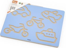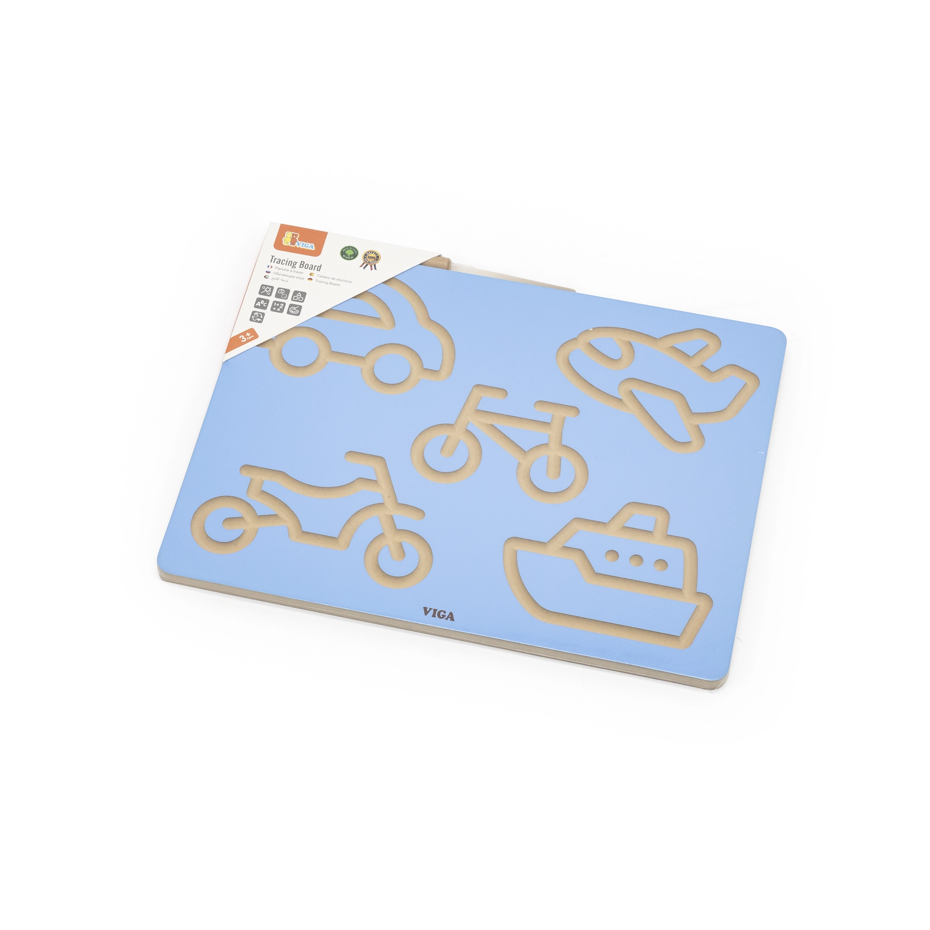 Открийте забавния път към първите линии и букви. Дървената табличка VIGA с мотиви на превозни средства насочва децата към плавни движения на ръката, правилен натиск и посока на линията. Тренировката протича естествено чрез игра – многократното проследяване на улеите подпомага концентрацията и увереността в ръката.