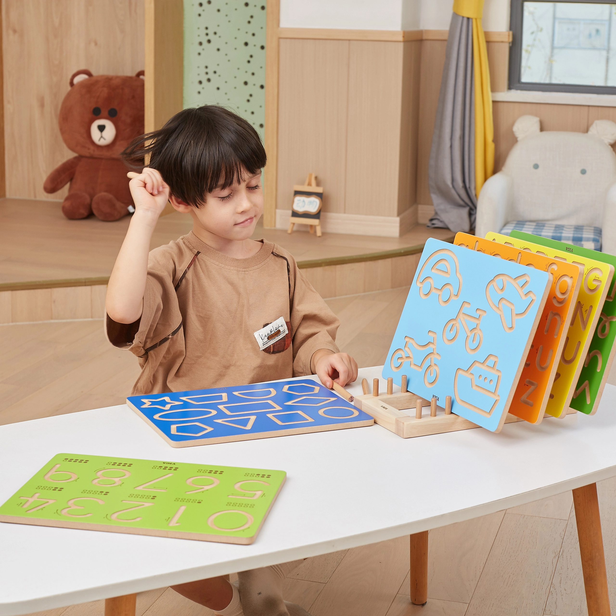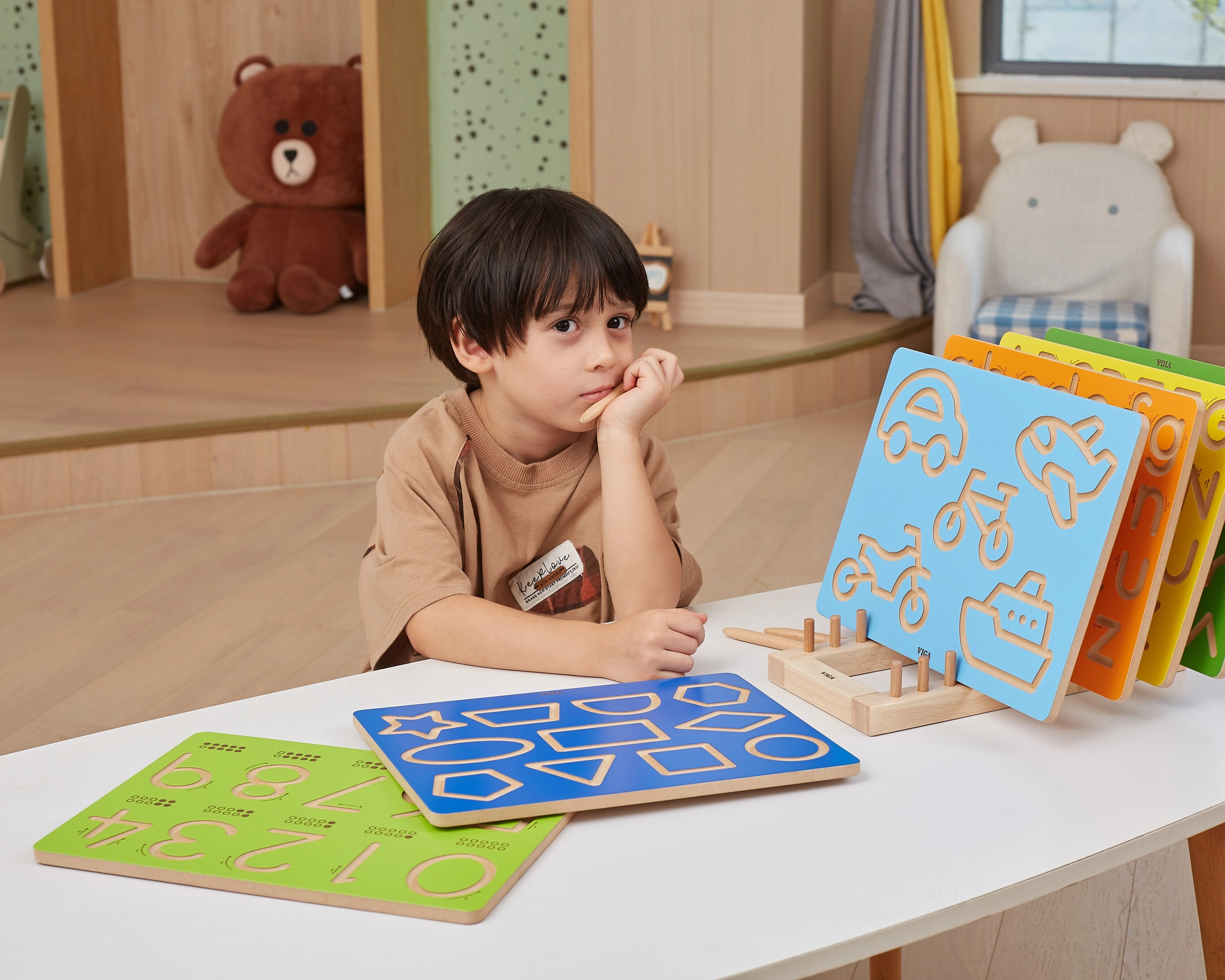 Ергономично фрезованите линии осигуряват осезателна обратна връзка, така че детето усеща правилната траектория дори без предишен опит. Компактната и издръжлива изработка е подходяща за дома, детски градини и детски кътове.