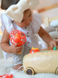 Един продукт, три активности: дърпано возило за първите стъпки, почукване за тренировка на сила и прецизност и магнитна игра за сръчност и концентрация.