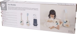 Укулелето е изработено от издръжливо дърво и е покрито с нетоксични бои. Свиренето на инструмента подпомага креативността, чувството за ритъм и развива координацията ръка–око.