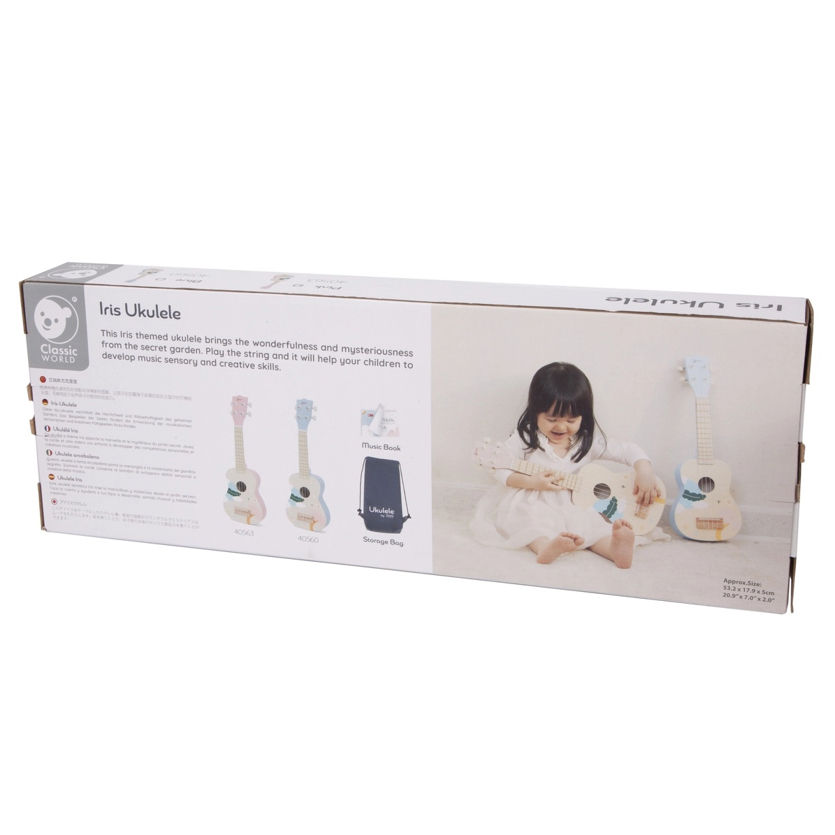 Очарователното детско укулеле от марката CLASSIC WORLD помага за развиване на фината моторика, концентрацията и музикалния усет. Благодарение на дървената конструкция и мек, не прекалено силен звук е идеално за първите стъпки в света на музиката. Повърхността е лакирана с нетоксични бои, а инструментът достоверно наподобява истинско укулеле.