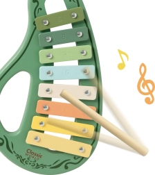 Инструментите са изработени от лакирано дърво и са оцветени с нетоксични бои. Ергономичните форми удобно лягат в малките ръчички и подпомагат фината моторика, усещането за ритъм и музикалната изразност. Идеални за семейно забавление и първи музикални уроци у дома.