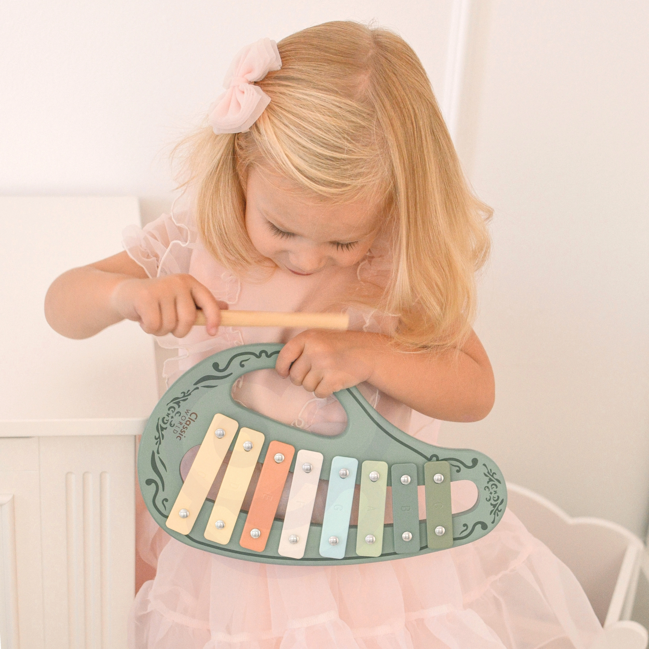 Открийте радостта от музиката с този дървен винтидж комплект музикални инструменти от CLASSIC WORLD. Пастелни цветове, качествена изработка и безопасни, заоблени ръбове правят комплекта идеален избор за първите музикални стъпки. Подпомага креативността, ритъма и слуха и е перфектен като подарък за деца от 18 месеца.