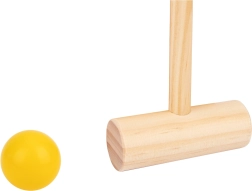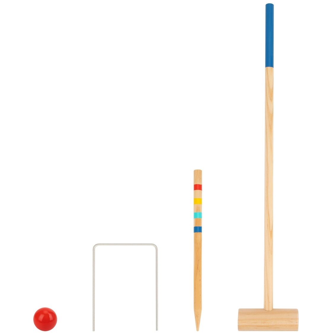 В комплекта ще намерите 4 дървени палки, 4 цветни топки, 6 метални вратички, 4 крайни колчета и чанта – всичко необходимо за незабавна игра.