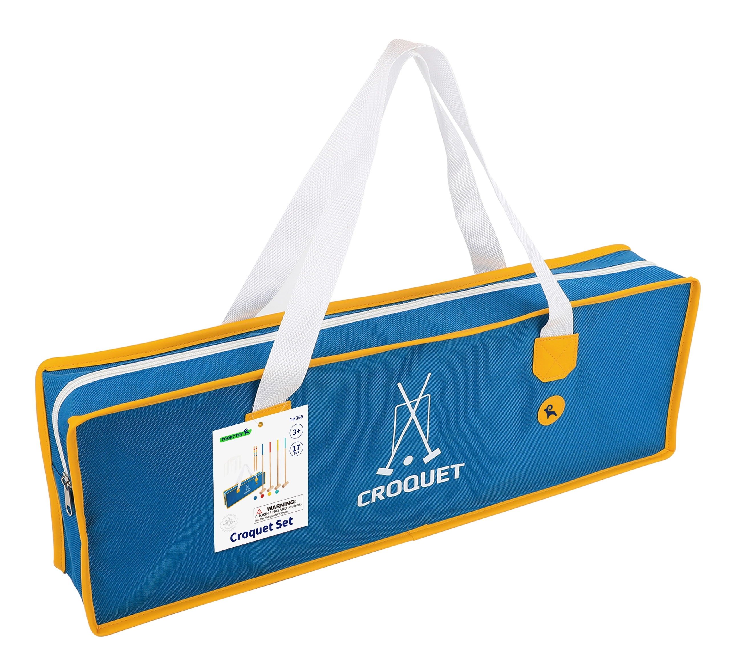 Съдържанието на комплекта осигурява всичко необходимо за игра с до 4 играчи: палки, топки, колчета и практична транспортна чанта за удобно съхранение и пренасяне. Крокетът насърчава здравословното движение, отборната игра и феърплея.