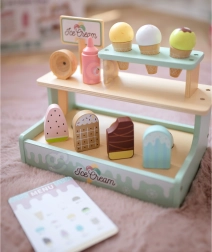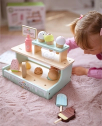 Открийте чара на играта на магазин със стилния сладоледен щанд WOOPIE GREEN. Децата могат да сервират сладоледи на топки и на клечка, да подреждат вкусове благодарение на магнитните топки и да избират от менюто. Играта развива координация ръка–око, креативност и социални умения при обслужване на клиенти.