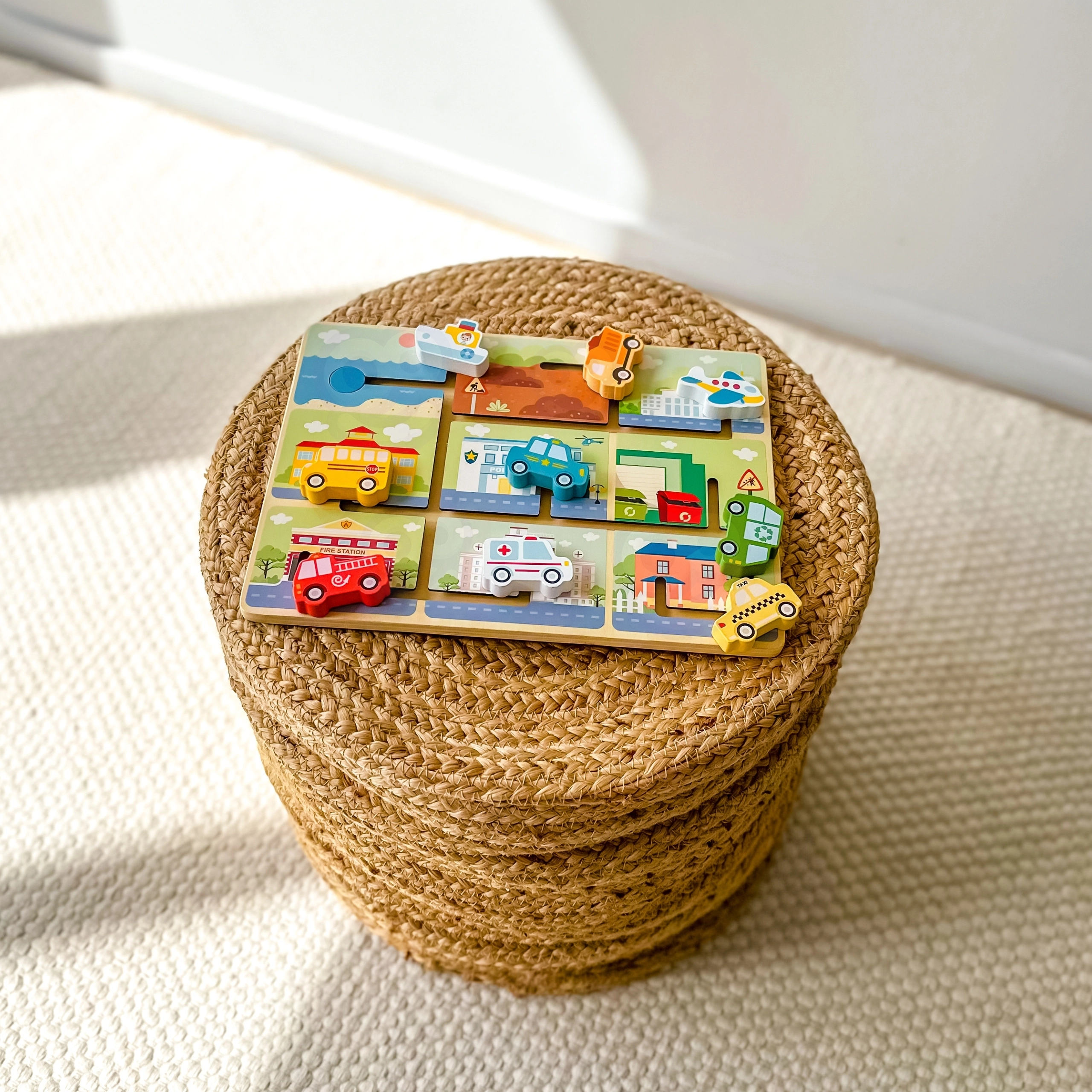 Играта естествено развива фината моторика, търпението и решаването на проблеми. Тематичните сцени и ярките цветове подпомагат възприемането на форми и цветове и речника – децата лесно усвояват названията на превозните средства и техните функции в града.