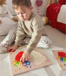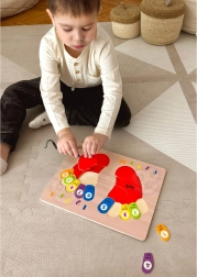 Тази пъзел дъска помага на децата да се научат да броят и да различават цветовете чрез интерактивна игра.