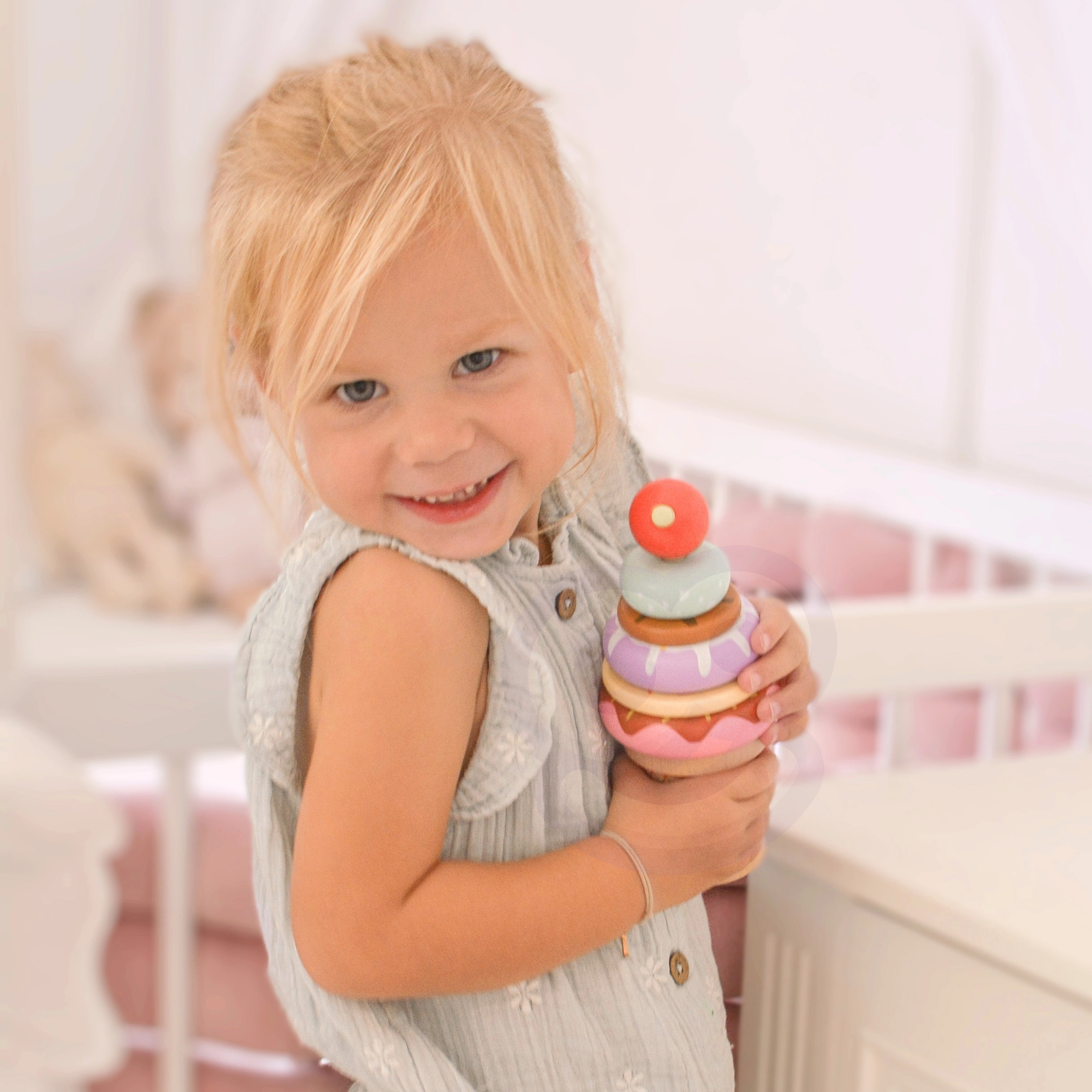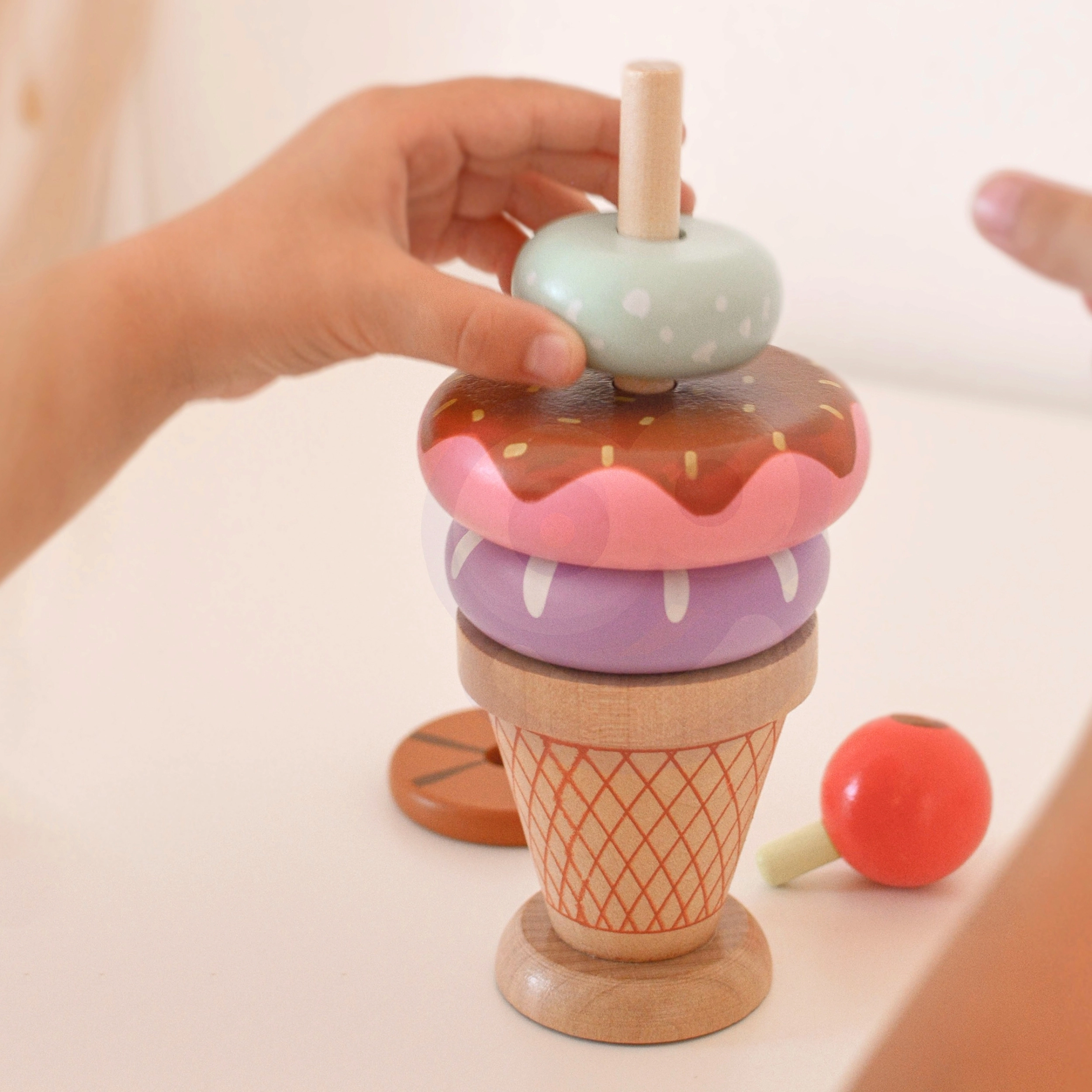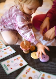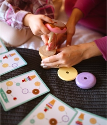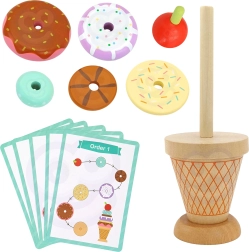 Дървената играчка за подреждане на сладолед от марката WOOPIE GREEN е идеален избор за деца от 12 месеца. Тази образователна играчка позволява на детето да открива света на цветовете и формите и да развива логическо мислене и мануални умения. Децата могат да съставят собствени комбинации от цветни пръстени или да следват приложените карти с модели, което гарантира, че всяка игра е ново приключение!