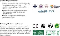 Здравите дървени елементи с нетоксични бои и заоблени ръбове са щадящи за детските ръце. Практичната кутийка улеснява съхранението и пренасянето на комплекта.