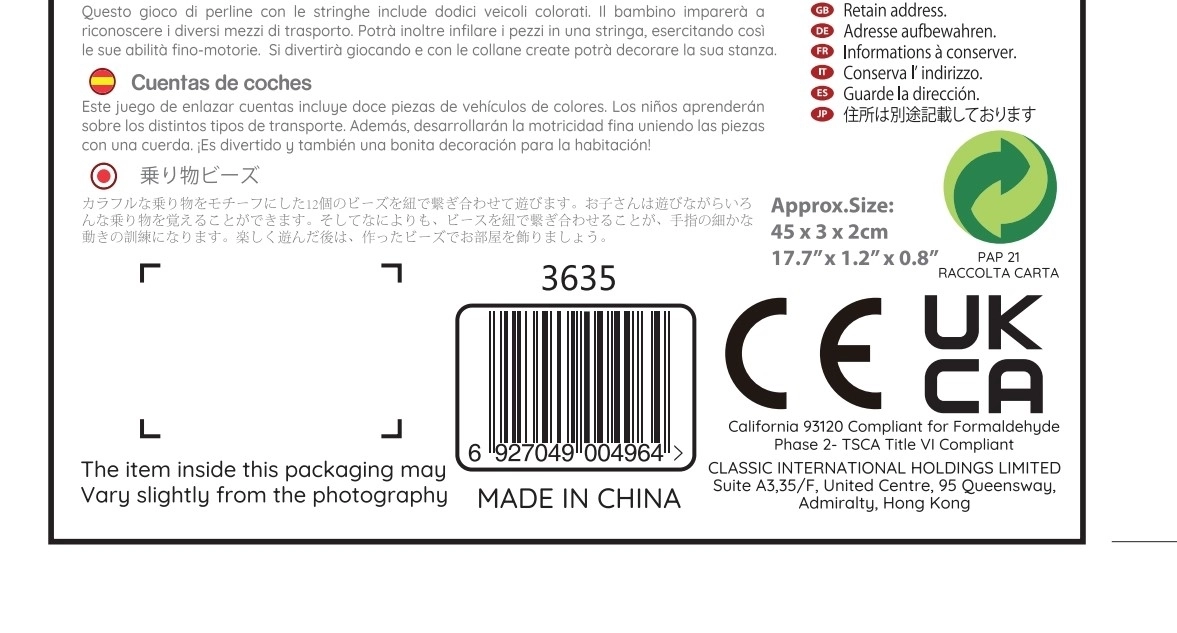 Качествената дървена изработка, гладките заоблени ръбове и нетоксичните бои осигуряват безопасна игра. Нанизването също така развива търпение, логическо мислене и естествено запознава децата с основите на правилата за движение по пътищата.