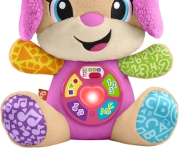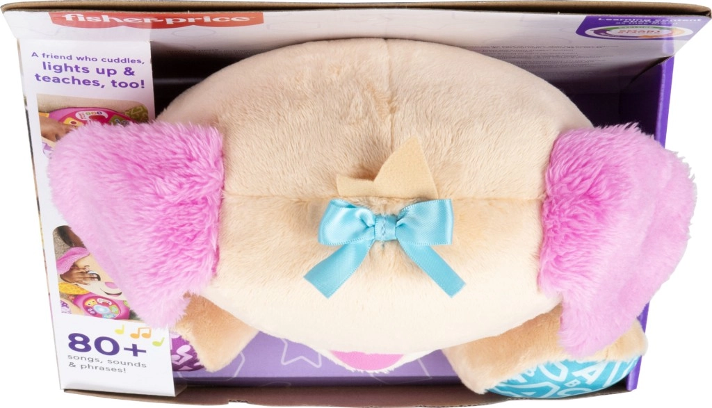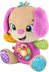 FISHER-PRICE Laugh & Learn Smart Stages Сестричка е мека прегръдка и умна образователна играчка в едно. Децата от 6 до 36 месеца откриват първи умения чрез песнички, светлинки и докосване. При натискане на бутоните на коремчето се включва светещо сърчице и се пускат песнички, числа или цветове – ученето е естествено и изпълнено с радост.