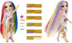 Открий креативния свят на стилизирането с куклата Rainbow High Amaya. Благодарение на ултра дългата, лесна за разресване коса и комплекта от цветни кредички ще създаваш нежни пастелни и ярки дъгови кичури. Цветовете се изплакват лесно и можеш да експериментираш отново и отново.
