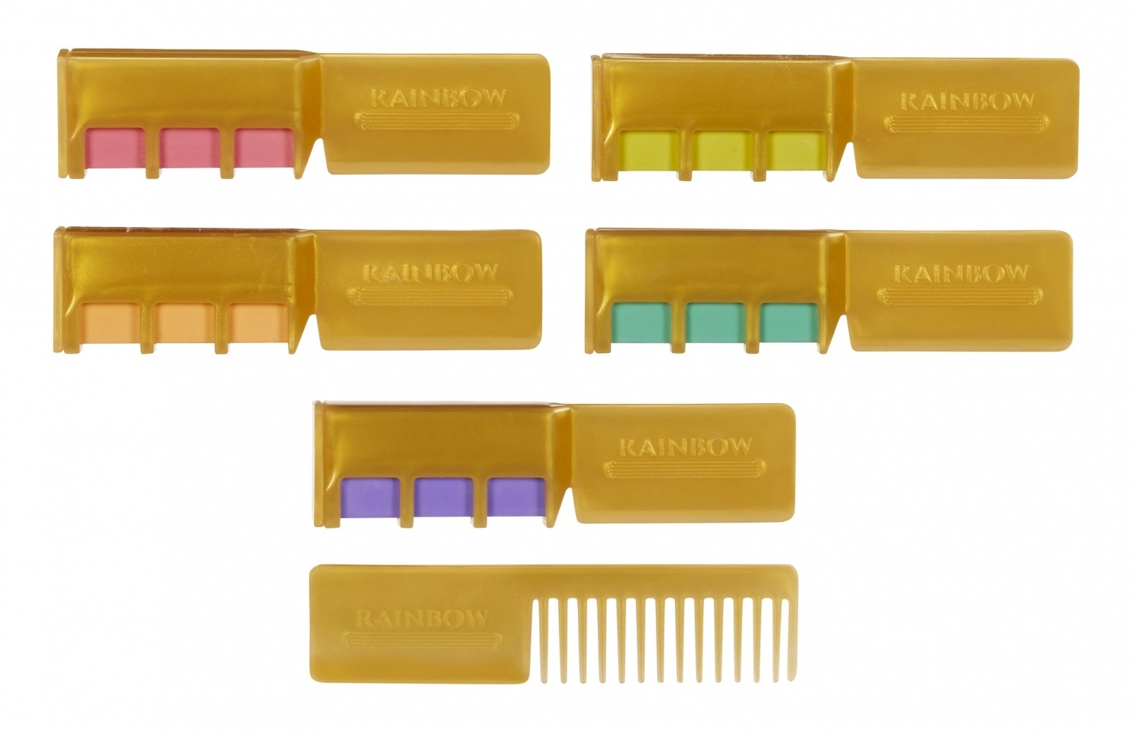 Пет практични гребена с цветни кредички позволяват да добавяш цветни ефекти за миг. Цветът се изплаква лесно с вода, така че можеш да експериментираш без ограничения.