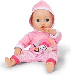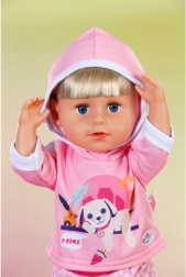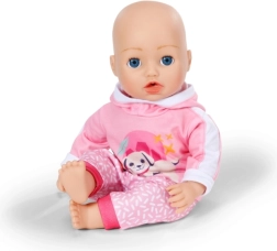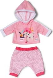 Очарователен розов анцуг за кукли BABY born с размер 43 см, който съчетава комфорт и стил. Комплектът включва мекичко суичърче с качулка и щампа с кученце, както и съчетаващ се панталон с шарка. Благодарение на еластичните маншети и лесното обличане е идеален за всекидневна игра и развива въображението и грижовните умения.