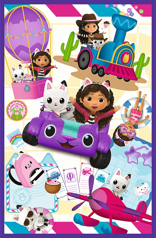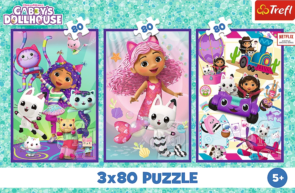 Открийте пъстроцветни сцени от приключенията на ГАБИ и нейните котешки приятели. Трите отделни пъзела по 80 части носят на децата дълги часове творческо забавление, развиват търпение, концентрация и фината моторика и подпомагат визуалното въображение.