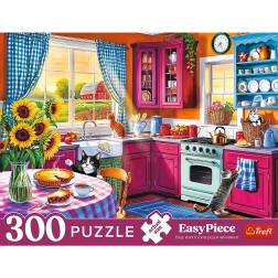 Пъзел EasyPiece – Сутрин в кухнята предлага приятен мотив на уютното сутрешно оживление в кухнята. Благодарение на по-големите, добре видими части реденето е комфортно и интуитивно, така че ще го оценят дори онези, които тепърва започват с пъзелите.