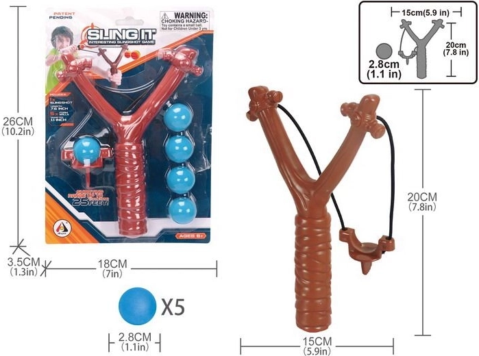 Нашата прашка с пет топчета е отличен избор за деца и възрастни, които обичат дейности на открито. Прашката има компактни размери 15x20 см, което позволява лесна употреба и преносимост. Топчетата с диаметър 2,8 см са перфектни за прецизни изстрели.