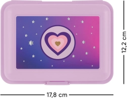 Търсите практично и същевременно стилно решение за запазване на закуските на вашите деца свежи и сигурно затворени? Нашата кутия за сандвичи с мотиви на коне и сърца е точно това, от което се нуждаете. С размери 17,8 см дължина и 12,2 см ширина тя предоставя достатъчно пространство за всички любими лакомства. Оборудвана е с разделител, който позволява отделно съхранение на различни храни.