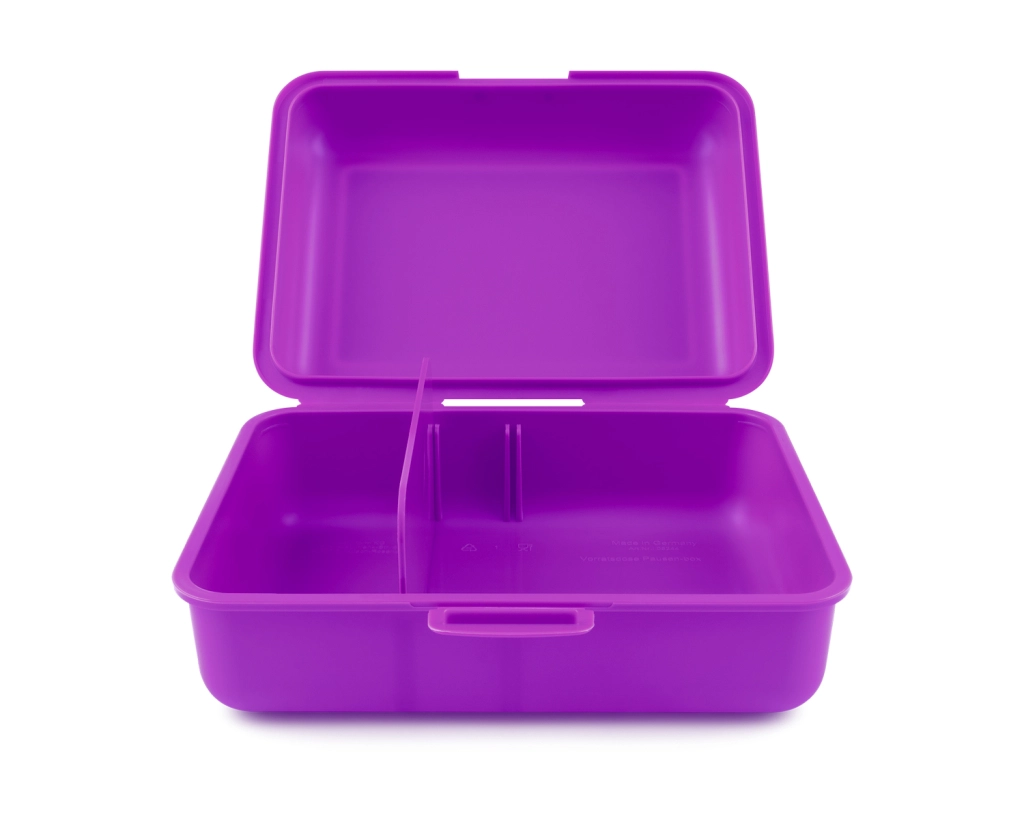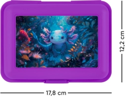 Елегантна лилава кутия с мотив на аксолотъл придава игрив вид на вашите ястия.