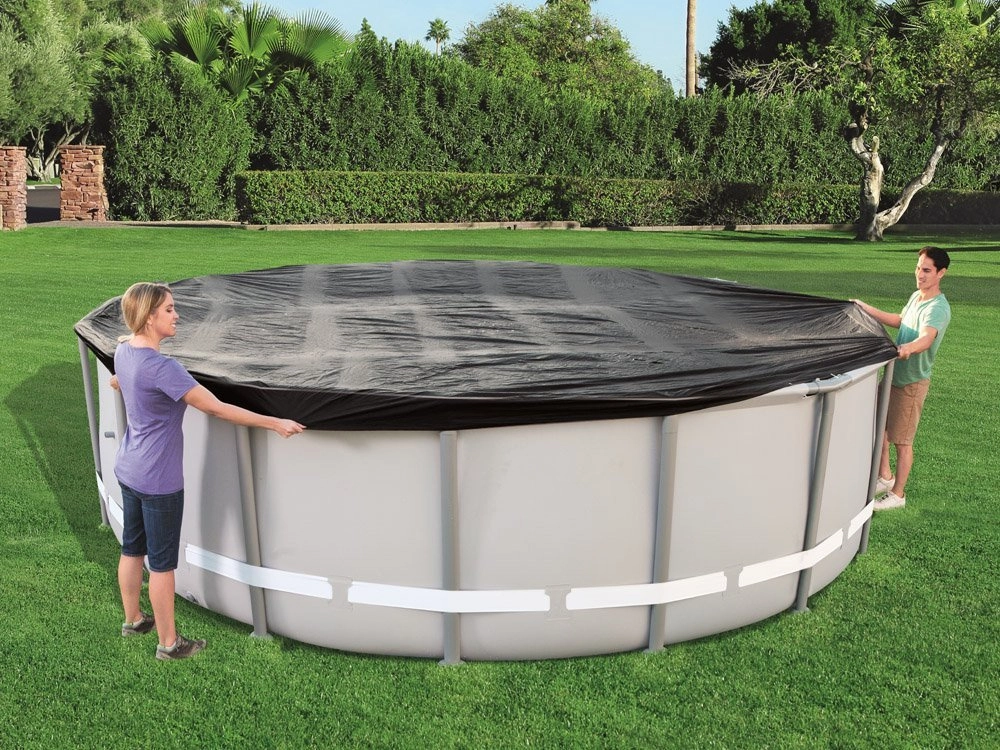 Най-добрата защита за вашия басейн с конструкция: Това универсално покривало от Bestway осигурява надеждна защита на басейна от насекоми, птици, листа и лек дъжд.