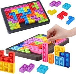Този 3в1 сензорен пъзел от качествен нетоксичен силикон ще зарадва деца и възрастни. При натискане на балончетата издава нежен, успокояващ звук, а след обръщане можете да започнете отново – идеално за облекчаване на стреса и съсредоточена игра. Елементите в стил Tetris се подреждат в подложката и създавате различни модели, като естествено тренирате координация око–ръка и пространствено въображение.